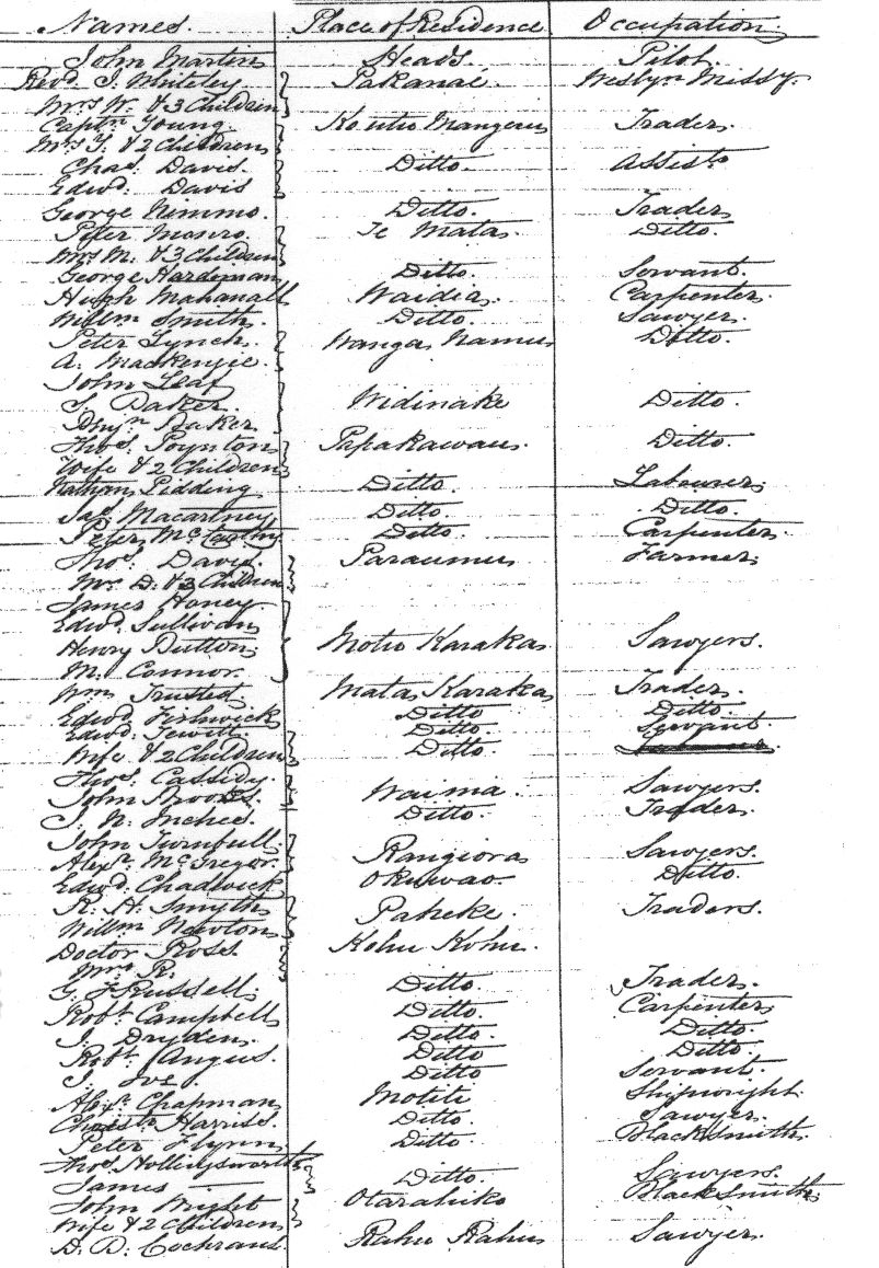 Reverend N. Turner, Mrs Turner & 9 children Reverend W. Woon, Mrs Woon & 4 children Reverend J. Hobbs, Mrs Hobbs & 4 children J. Buller, Mrs Buller & 1 child